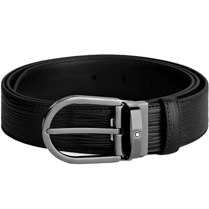 Черный кожаный ремень с подковообразной пряжкой 35мм от магазина премиальных ручек Premium Pens в Кемерове.